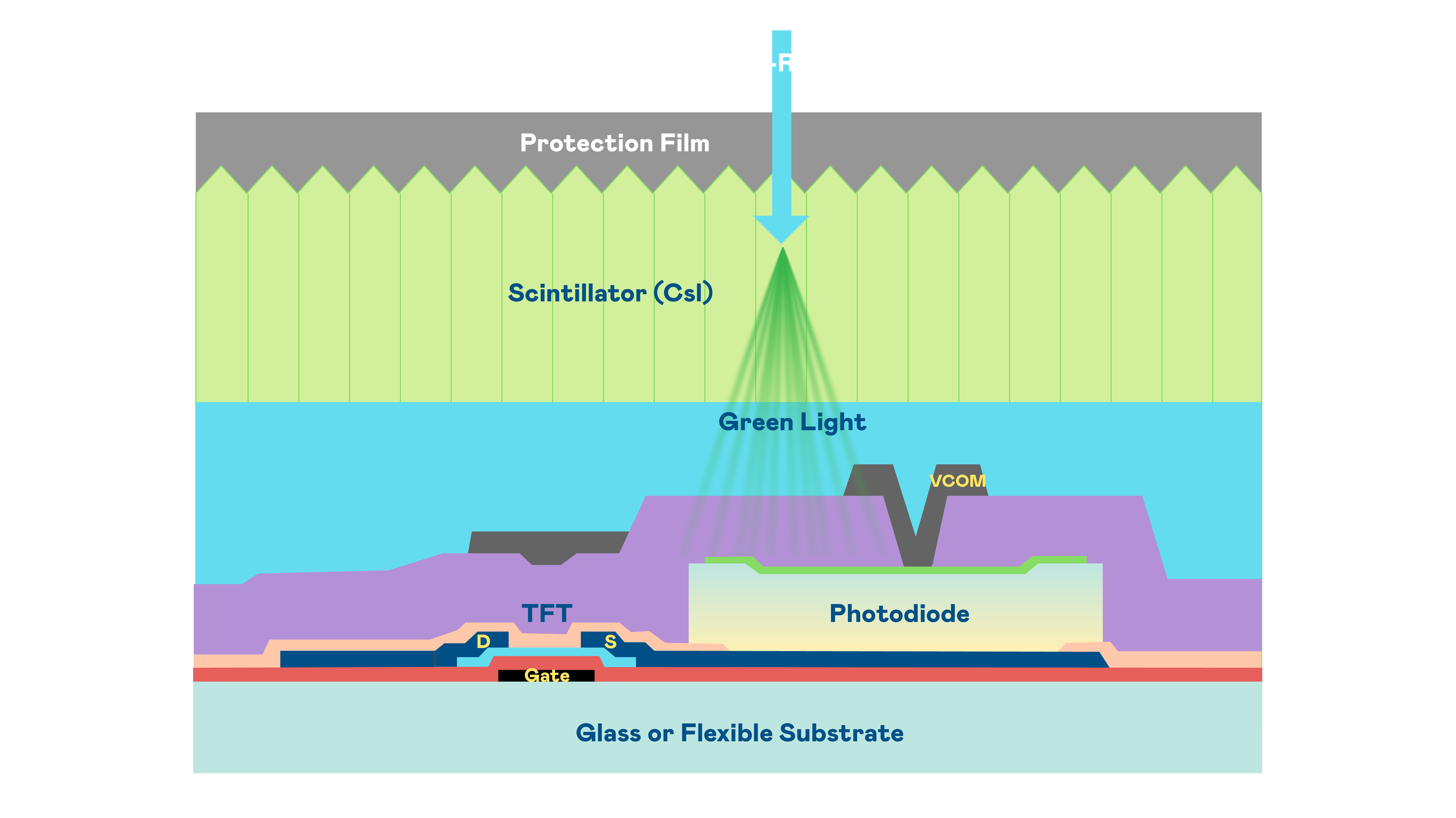 为了留住女婿40岁岳母一咬牙開發大尺寸TFT加上光電二極體 (photodiode)應用於X光影像感測,光靈敏度高的元件技術,可降低X光攝影時人體接收之輻射劑量。除了玻璃基板之外,亦可選擇柔性基板,做為可攜式的醫療與工業用X光影像感測器。